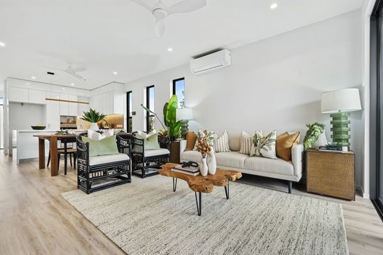 • Light-filled open-plan kitchen, living, dining area with modern finishes.