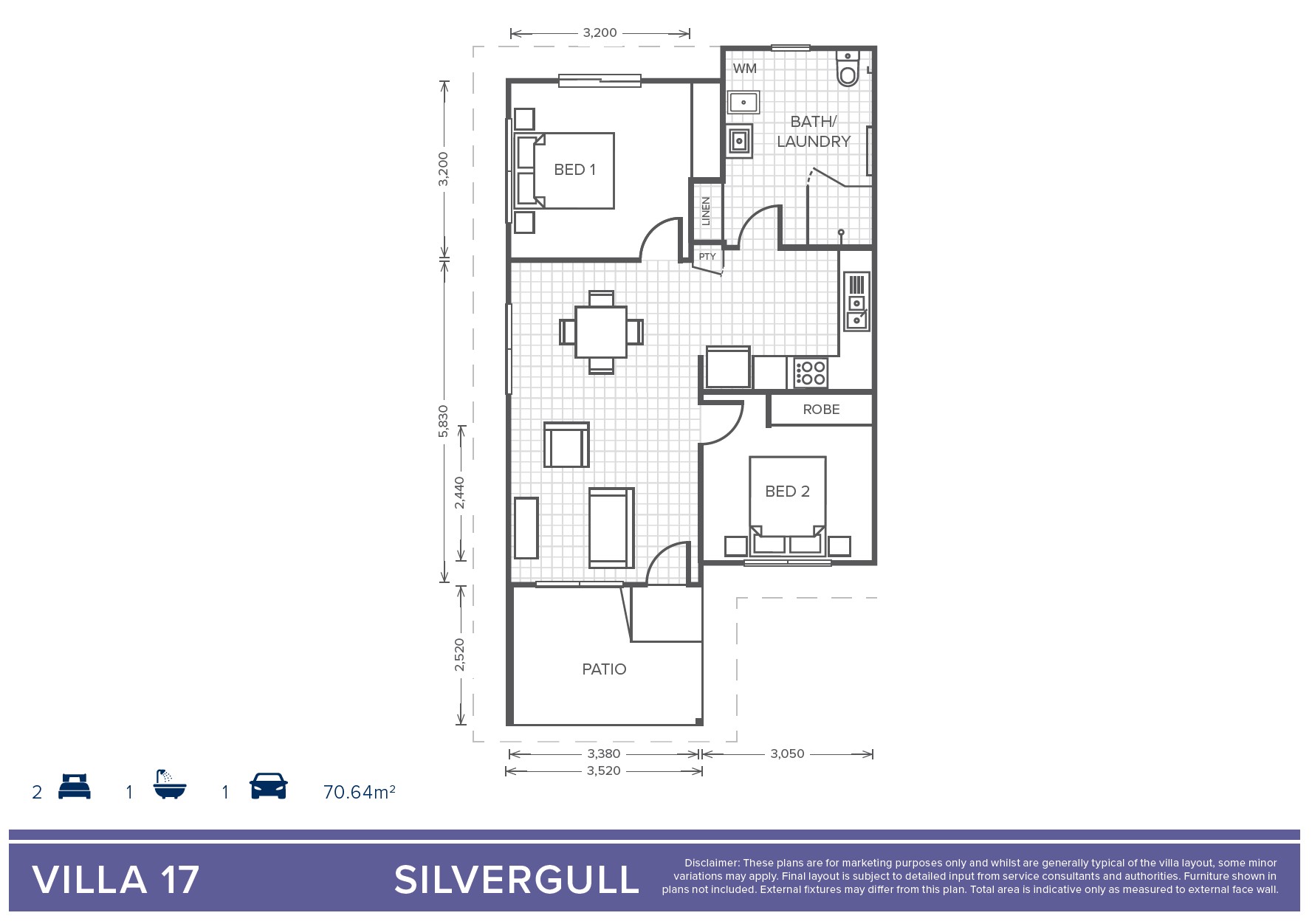 Villa 14 and 17 - Silvergull - 2 Bedroom + 1 Bathroom - Oak Tree Park Avenue