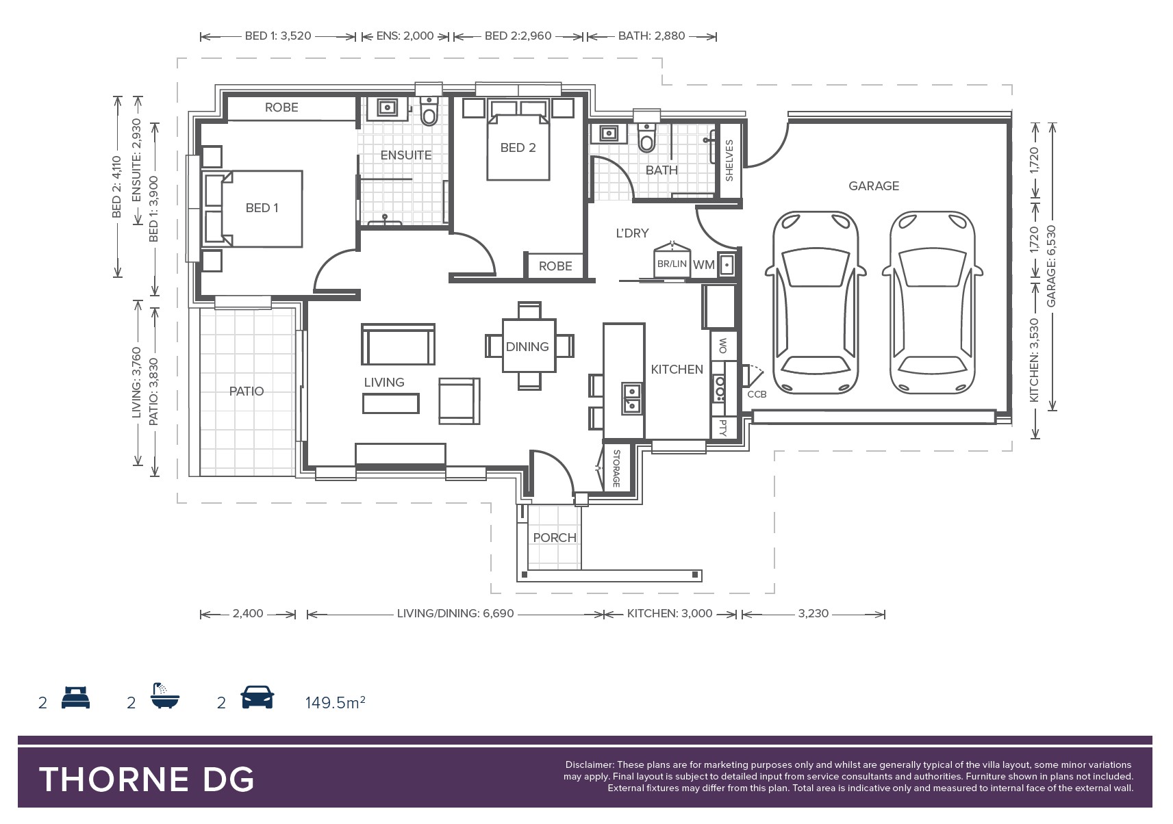 Featuring a double-garage with internal access, villa 18 offers two spacious bedrooms, two bathrooms and a bright open-plan layout that extends onto a private patio. The modern kitchen features sleek stone bench tops and quality appliances that combine style and functionality, creating an ideal space for elegant and effortless entertaining or a comforting home-cooked meal.