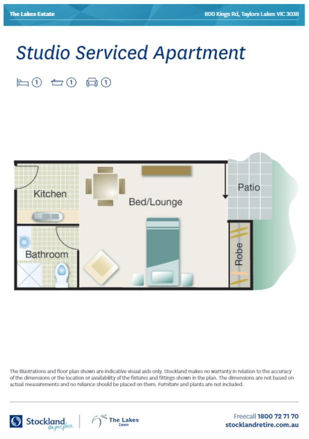 Serviced Apartments at The Lake Estate are open plan with a kitchenette, separate bathroom and balcony or patio. They're ideal for people looking for a more assisted retirement with friendly staff helping you out around the home when and where you need it. They’re also perfectly located close to the heart of our retirement village to offer easy access to all the community activities and facilities.