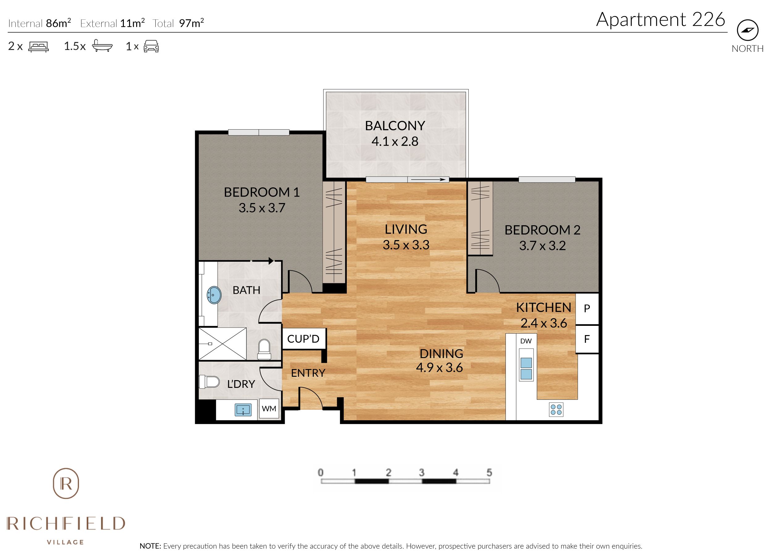 - Fully equipped kitchen with floorboards and a beautiful Caesar stone bench top